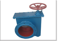 在壳体外侧设有批示闸板开度的指针及标牌,可直观地控制闸板开度的百分比。